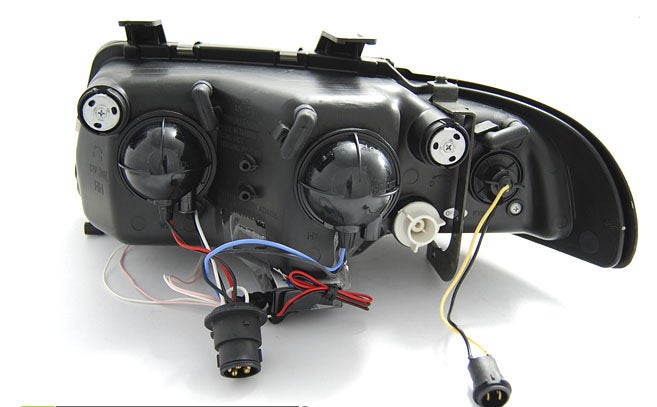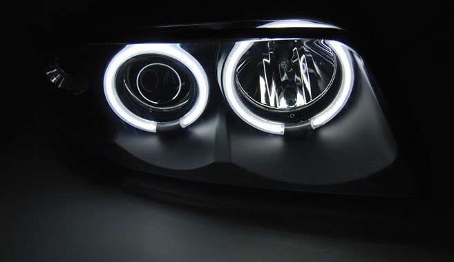 Met e-keur, dus geschikt voor de openbare weg. Wordt geleverd als set (links en rechts). Projector koplampen met dubbele CCFL Angel Eyes.
